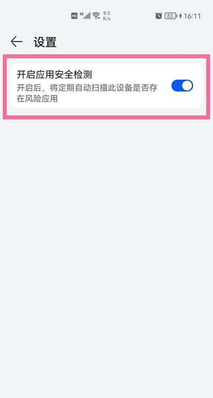 进入设置并关闭检测功能:在“应用安全检测”页面右上角,找到“设置”图标(通常为齿轮形状)并点击,进入设置页面后,找到“开启应用安全检测”选项,将其右侧的按钮滑动至关闭状态即可。