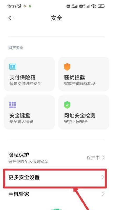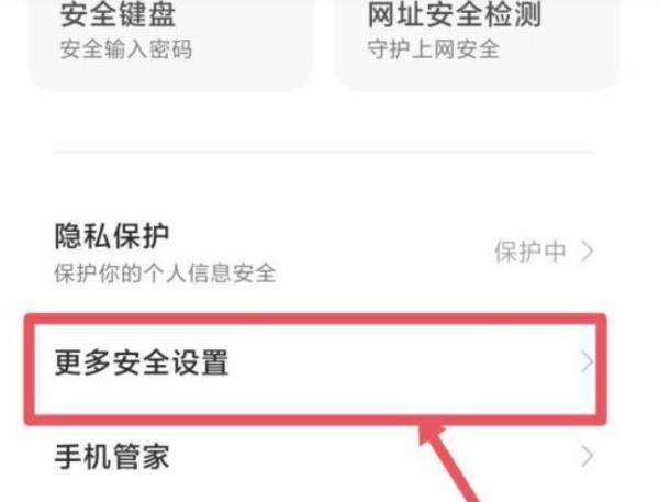 进入更多安全设置界面在安全界面中,点击更多安全设置。此步骤用于定位广告管理功能,部分系统版本可能将广告选项隐藏在二级菜单中。