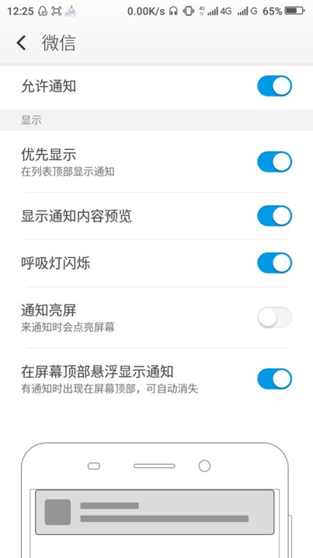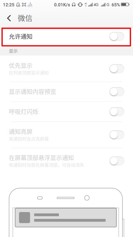 3、完全关闭该消息,负面影响是,正常的微信消息将不会在通知栏中提示,只会发出振动或通知声音提示。
