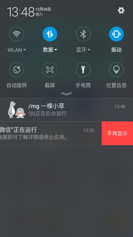 小米 4手机的微信和通知栏上出现微信正在运行,触摸即可了解详情或停止应用去掉方法如下: