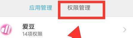 步骤4:切换至权限管理并点击后台弹出界面在应用权限管理界面顶部切换至“权限管理”标签页,向下滚动找到“后台弹出界面”选项并点击进入。