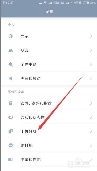 在打开的设置窗口中,找到“手机分身”菜单项,点击手机分身菜单