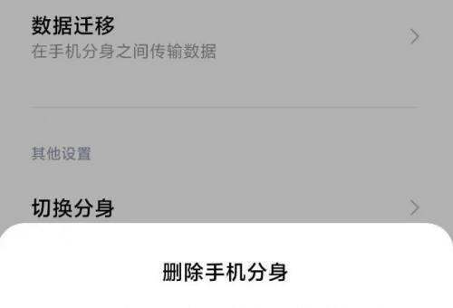 在手机分身设置页面中,滑动屏幕到最后一个菜单,点击“删除手机分身”菜单