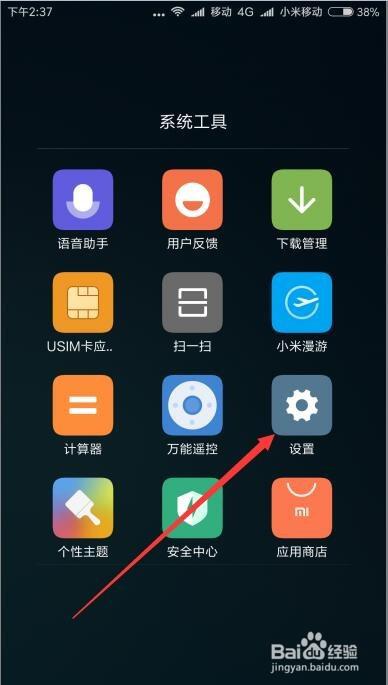 在Miui8桌面上找到设置图标,点击该图标后进入手机设置页面