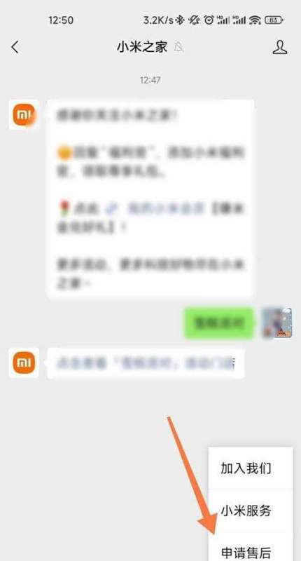 1. 打开微信并选择【申请售后】在微信界面中找到小米官方售后入口(通常为“小米服务”或相关公众号),点击进入售后申请页面。