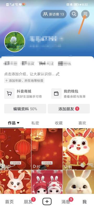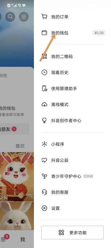 2. 点击页面右上角的设置按钮,并进入“抖音钱包”页面。