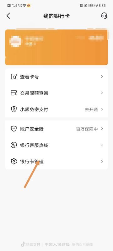 3. 找到“银行卡管理”并点击进入。