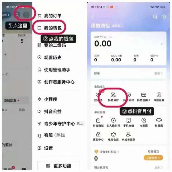 1.首先,用户需要确保自己的抖音月付账户内没有任何余额,如果有余额,请先将余额提现;
