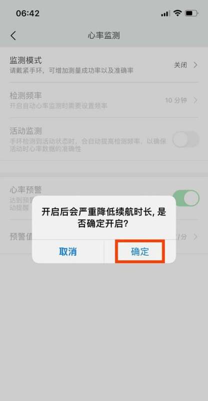 步骤5:确认启用在弹出的确认窗口中点击确定,完成设置后,手环将在夜间睡眠时自动启用辅助检测功能。