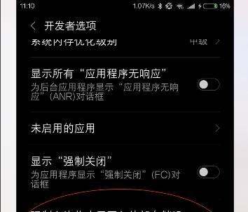 修改存储权限在开发者选项中找到“强制允许将应用写入外部存储设备”,开启该功能以解除系统对应用安装位置的限制。