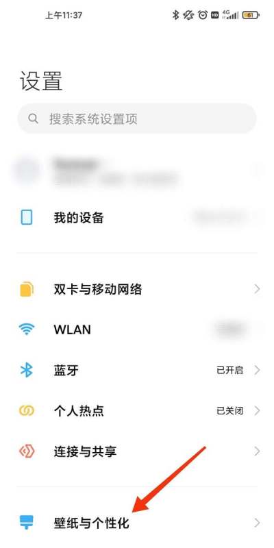 进入壁纸与个性化:在设置界面中,滑动找到并点击“壁纸与个性化”选项。
