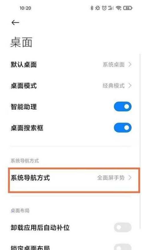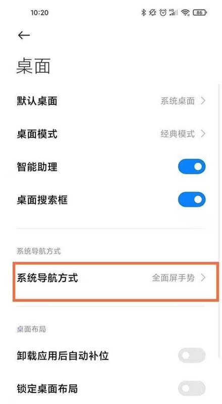 选择系统导航方式在【桌面】设置页面中,点击【系统导航方式】进入导航功能配置界面。