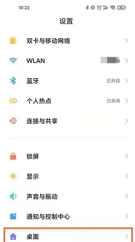 进入设置界面打开手机【设置】,在功能列表中找到并点击【桌面】选项。