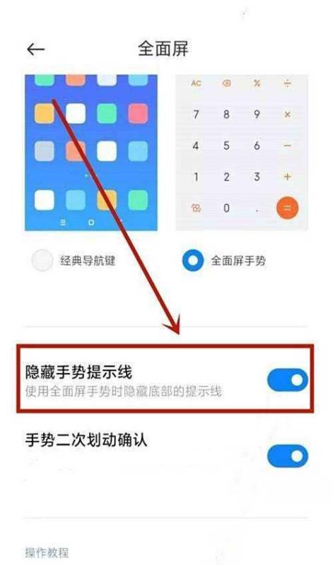 关闭横条:若需隐藏底部横条,点击开启【隐藏手势提示线】开关。