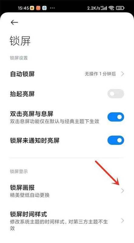 点击【锁屏画报】选项:在锁屏设置页面中,找到“锁屏画报”选项,点击进入。