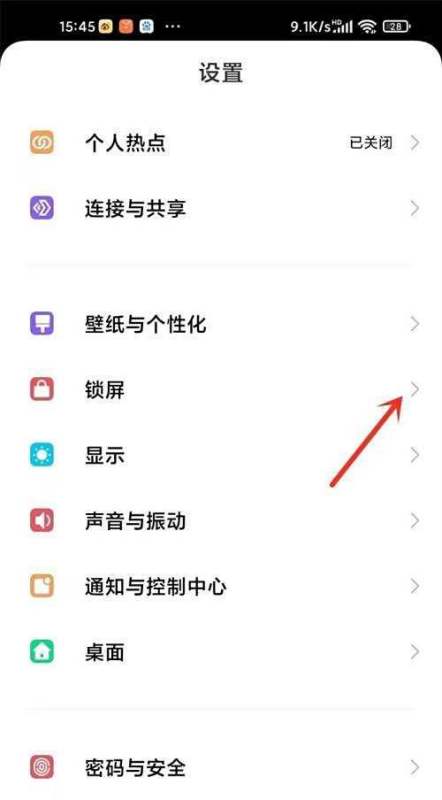 点击【锁屏】选项:在设置界面中,滑动屏幕找到“锁屏”选项,点击进入锁屏设置页面。