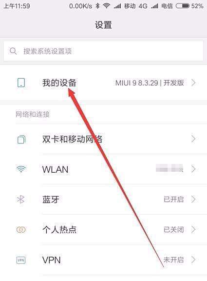 开启开发者模式在手机上左右滑动屏幕找到“设置”图标并点击进入,依次选择“我的设备”-“全部参数”,在全部参数窗口中连续点击“MIUI版本”七次,即可开启开发者模式。
