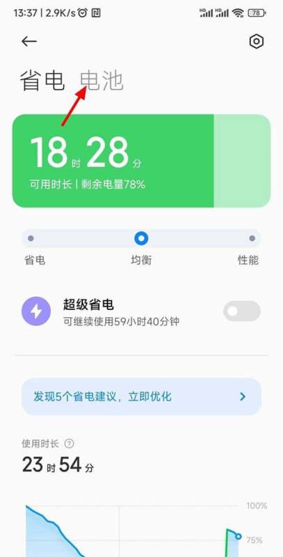 进入电池设置:在“省电与电池”界面中,继续点击“电池”选项,进入电池管理页面。