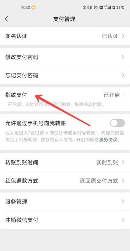 选择指纹支付选项在支付管理页面中,找到并点击“指纹支付”选项,进入指纹支付设置界面。