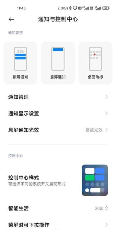 定位锁屏下拉设置在【通知与控制中心】页面中,找到【锁屏时可下拉操作】功能入口并点击进入。