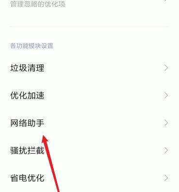 选择网络助手在设置菜单中找到网络助手选项并点击,该功能负责管理流量使用。