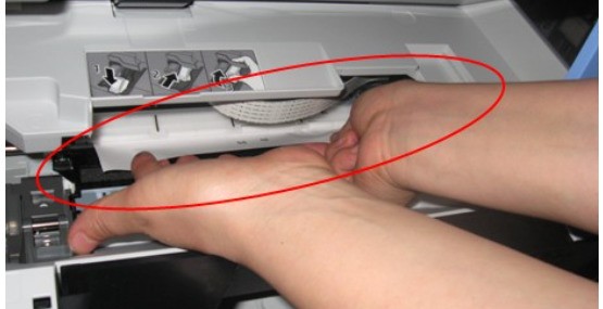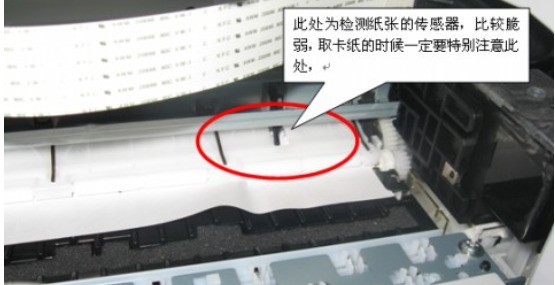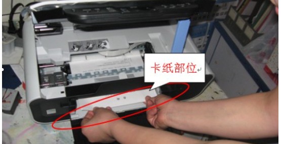 2、接着就可以看到卡纸的情况,然后用手轻轻抓住卡纸。