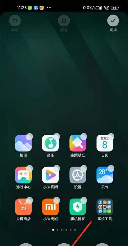 打开桌面管理打开手机桌面,双指捏合屏幕进入桌面编辑模式。