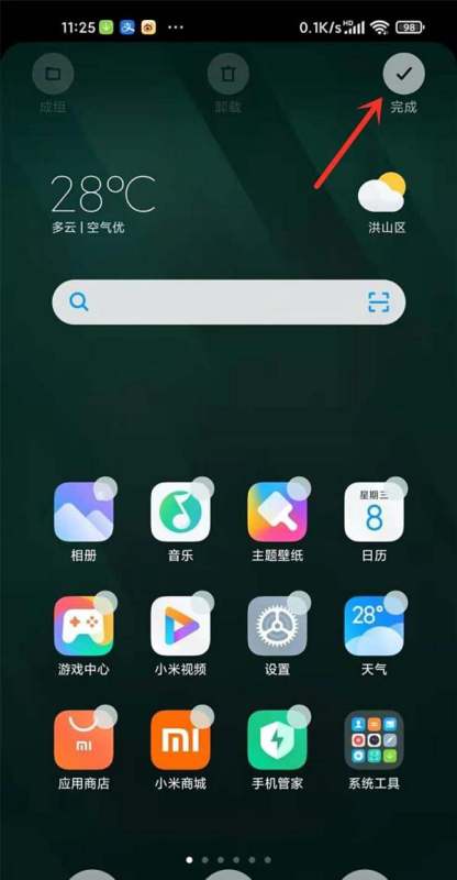 退出桌面管理调整搜索栏位置至桌面上方后,点击右上角【完成】保存设置。