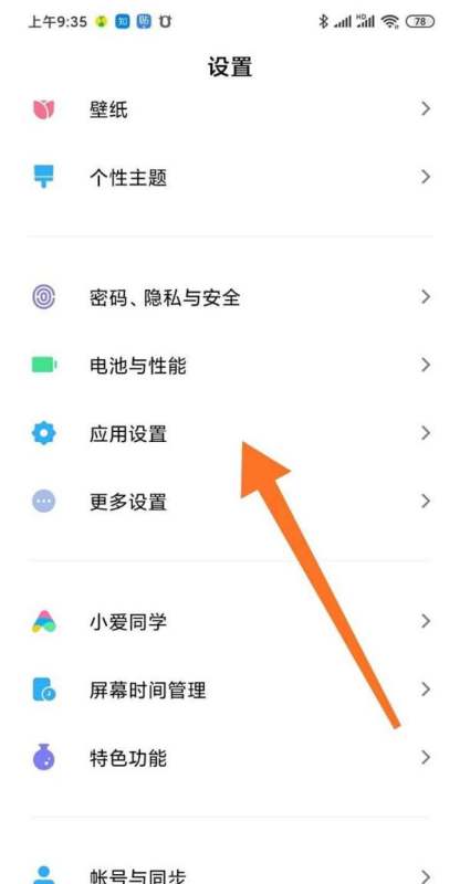 进入应用设置:在设置页面中,向下滑动找到应用设置选项并点击,进入应用管理相关功能界面。
