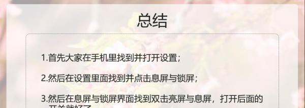 总结:通过“设置-息屏与锁屏-双击亮屏与息屏”三步即可完成操作,开启后无需按压电源键,轻触屏幕两次即可快速唤醒。