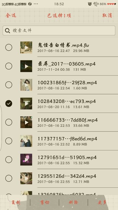 4、选中要删除的视频