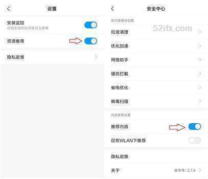 1、安全中心:设置→系统应用→安全中心→关闭“资讯推荐”