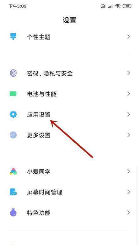 选择应用设置:在设置菜单中,向下滑动屏幕,找到并点击应用设置选项。