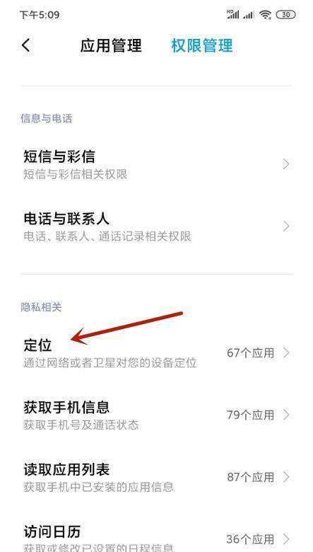 找到定位权限:在权限管理列表中,向下滑动屏幕,找到并点击定位选项。