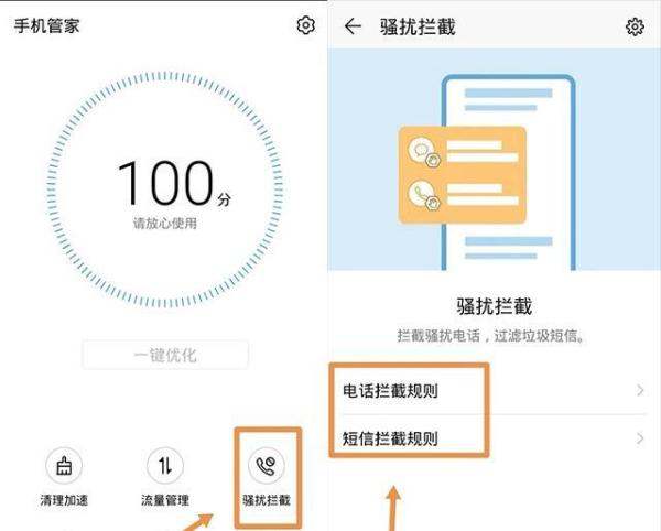 骚扰拦截设置:进入“手机管家”后,点击“骚扰拦截”选项,根据需求选择拦截规则(如拦截陌生号码、高频呼叫、关键词短信等)。
