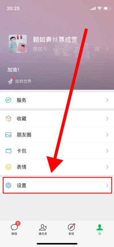 1.打开微信“我”的界面,点击下方的“设置”(如下图):