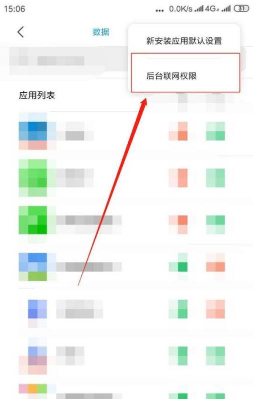 进入后台联网权限设置在联网控制页面右上角,点击三个点()图标,弹出菜单后选择“后台联网权限”。此选项专门针对应用后台运行时的联网行为进行管控。