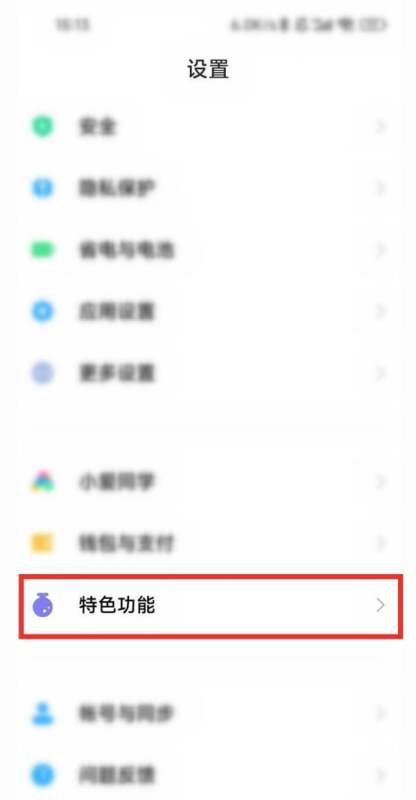 点击“特色功能”选项:在设置页面中,滑动查找并选择“特色功能”。