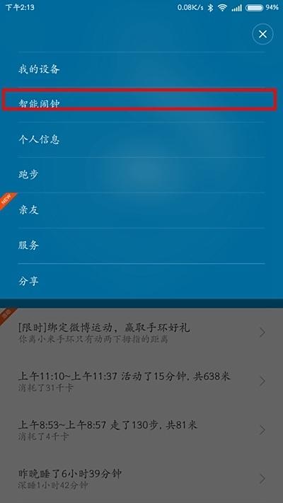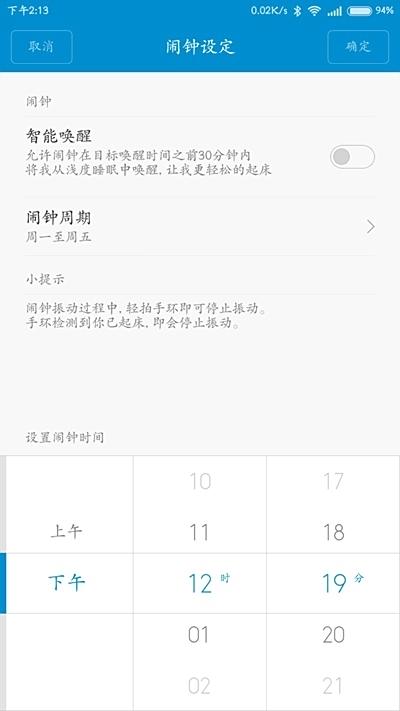 智能唤醒允许小米手环闹钟在目标唤醒时间前30分钟将你唤醒