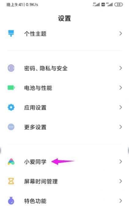 在设置菜单中,滑动屏幕找到【小爱同学】选项并点击进入。此功能负责管理语音助手及相关授权设置。