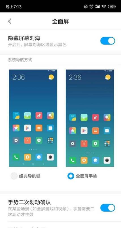三、注意事项兼容性:部分小米机型可能因硬件差异导致选项名称略有不同,但核心路径一致。显示效果:隐藏刘海后,状态栏区域会变黑,可能影响壁纸或视频的全屏显示效果。手势适应:全面屏手势需1-3天适应期,建议通过教程反复练习。