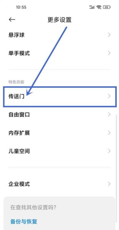 进入传送门设置项:在更多设置页面中,继续查找“传送门”设置项,点击进入传送门设置页面。