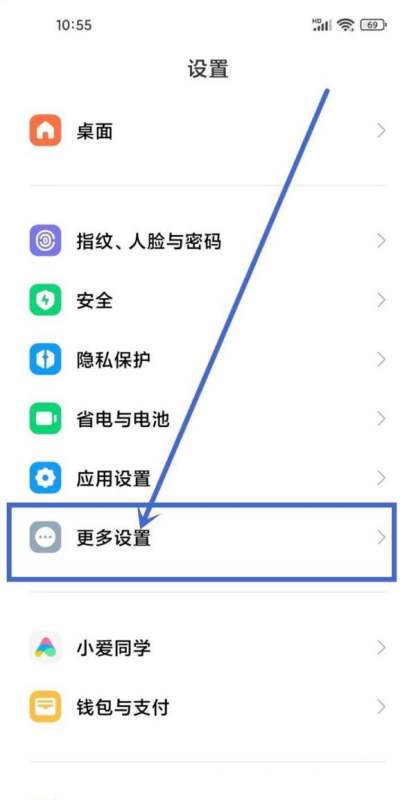 点击更多设置选项:在设置页面中,通过上下滑动屏幕查找“更多设置”选项,点击进入该页面。