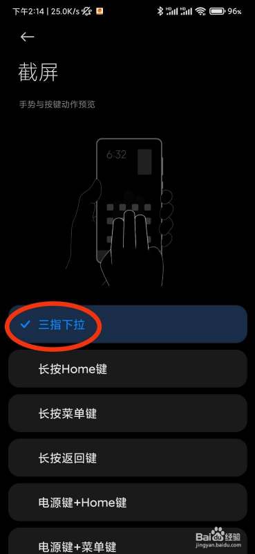 勾选三指下拉:在三指下拉截图设置页面中,勾选“三指下拉”选项,即可完成设置。