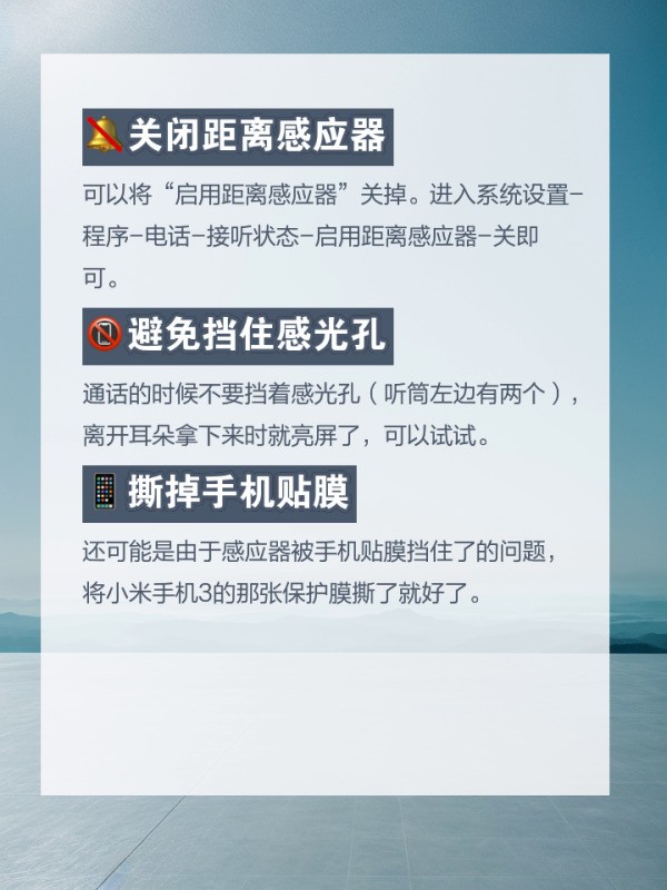 距离感应器通过发射红外光线并检测反射信号,判断手机与物体的距离。当感应到物体靠近(如通话时贴近耳部)时,系统自动熄灭屏幕以防止误操作。关闭此功能后,系统将不再执行该逻辑,屏幕状态需通过电源键或手动操作控制。