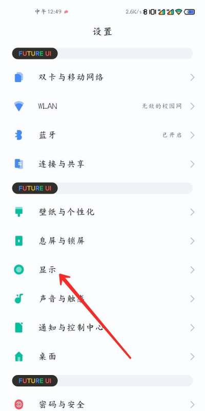 步骤2:进入显示设置在设置界面中,滑动屏幕找到“显示”选项并点击进入。此选项负责管理屏幕相关的参数配置,包括亮度、分辨率、字体大小等,部分机型可能显示为“显示与亮度”或类似名称。