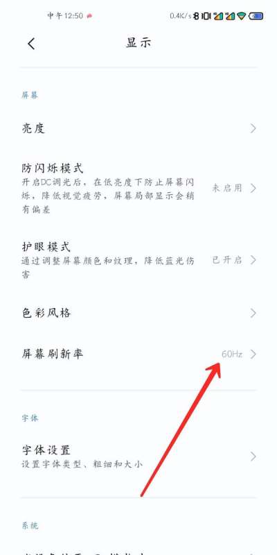 步骤3:选择屏幕刷新率在显示设置页面中,查找“屏幕刷新率”功能项。该选项通常位于屏幕分辨率、护眼模式等设置下方,部分机型需点击“更多显示设置”后展开。若未直接显示,可通过设置界面顶部的搜索框输入关键词快速定位。
