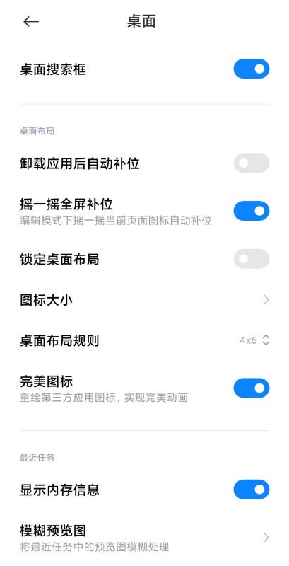 在设置桌面最近任务中开启“显示内存信息”,然后按多任务键就能在右上角看到运行内存的占用信息。