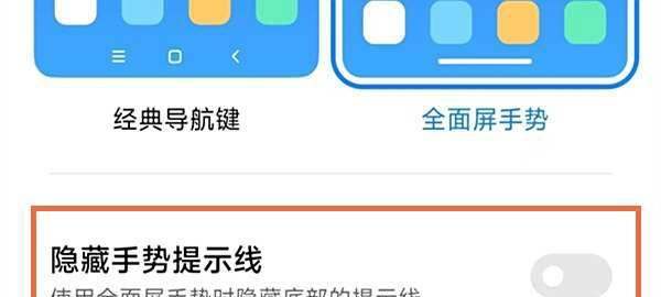 第三步:开启隐藏手势提示线开关在系统导航方式页面中,选择“全面屏手势”模式,并找到“隐藏手势提示线”选项。将该选项的开关滑动至开启状态,即可隐藏底部提示线。
