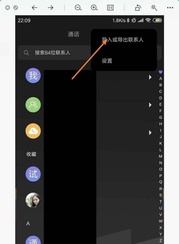 选择导入/导出功能:在弹出的菜单中点击“导入或导出联系人”。